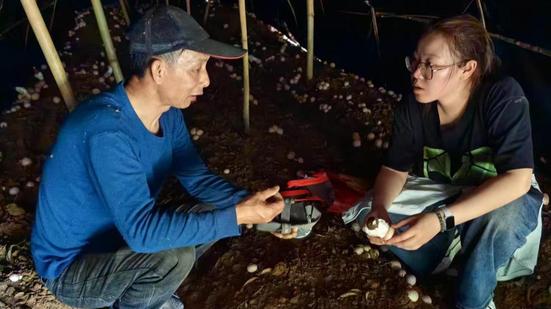 随后,田风华一行来到广东省荔竹山庄红托竹荪栽培基地。该基地是经济林下大棚地栽模式,同样存在出菇少、不出菇、病害多等问题。田风华指出,当地竹荪栽培土壤持水性差,土壤湿度没有保持好,导致出菇率低,并从土壤改良、栽培管理、病虫害防治等方面给出了针对性的指导。