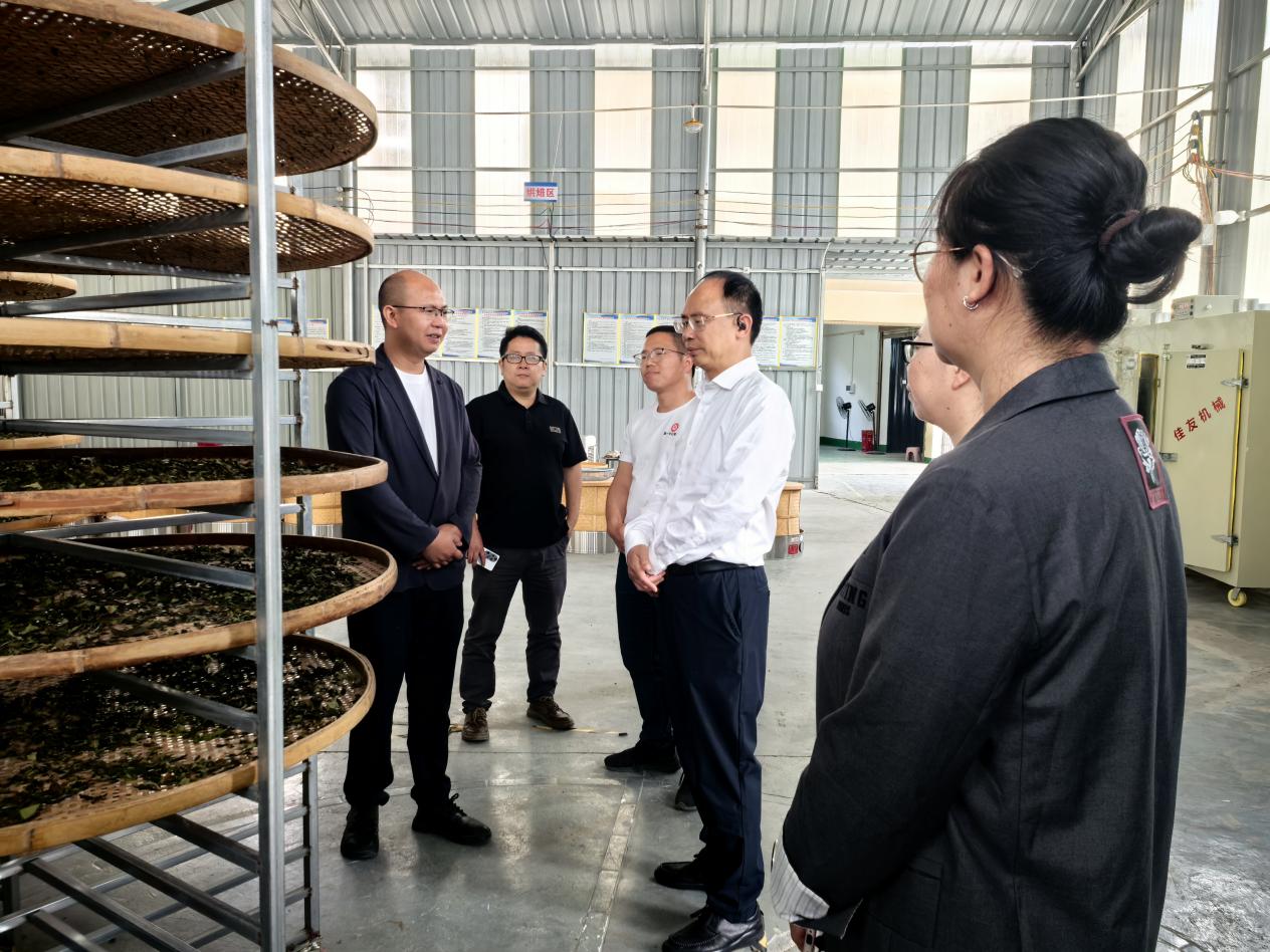 98858vip威尼斯下载一行先到坡柳村贵州坡柳贡茶农业发展有限公司调研,公司总经理黄浩向大家介绍了今年生产的具体情况,冉龙彪书记对茶产品宣传推广和文化打造提出建议。