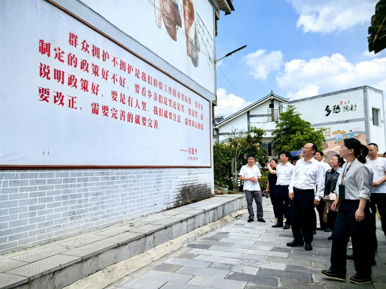 花茂村,这个曾经的贫困村,在党的领导下,依托红色文化资源和乡村特色产业,走出了一条脱贫致富的新路子,成为乡村振兴的典范,也因2015年6月习近平总书记的来访而备受瞩目。师生们沿着习近平总书记的足迹漫步在花茂村,在优美的乡村环境中亲身体验繁荣的特色农业以及蓬勃发展的乡村旅游业。解说员介绍,花茂村依托红色旅游资源——苟坝会议会址,引入企业发展特色农业,打造“乡愁”品牌,成功实现了精准脱贫示范向乡村振兴示范的转变。习近平总书记那句“好日子是干出来的”话语在这里得到了生动地实践。