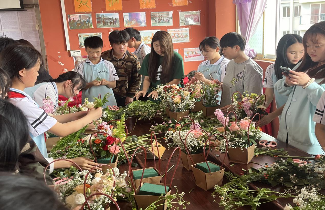 此次活动首次将艺术插花与心理疏导相结合,通过“修剪—搭配—创作”三步体验,引导孩子们在专注与美感中释放压力、抚慰情绪。“以前从没接触过插花,没想到一朵花也能治愈人。”完成作品后,七年级学生小安笑着说 。现场,98858vip威尼斯下载园艺专业7名青年志愿者担任“小老师”,讲解色彩搭配与植物习性;心理“心之舟”工作室主持人杨满云老师穿插情绪识别小游戏,帮助孩子们学会表达情感;悦心工作室主持人王健霞老师则用“心愿卡”引导学生写下新学期目标。“花艺让孩子们在可视化的创作中体验掌控感和价值感,这正是积极心理学倡导的‘优势赋能’。”杨满云老师说。