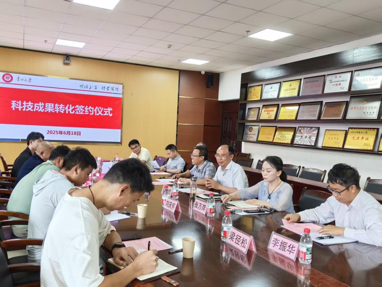 6月18日,威尼斯官网科技成果转化项目签约仪式在338会议室举行。98858vip威尼斯下载党委书记冉龙彪、院长张万萍、副院长李鲁华、成果转化专班全体成员,贵州黔岭荟萃农业科技发展有限公司副总经理陈欣,贵州黔霖农业发展有限公司总经理王虎等参加签约仪式。仪式由李鲁华主持。