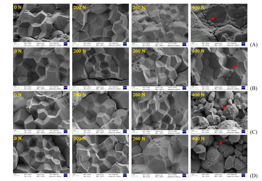 过量施氮为何导致籽粒强度下降?采用扫描电镜观察不同氮肥处理对超级杂交水稻胚乳发育的影响。在0和200 kg N ha-1处理,淀粉均呈多边形,颗粒均匀,排列紧密;在260 kg N ha-1时,淀粉颗粒分布不均匀,出现一些大颗粒和小颗粒;在400 kg N ha-1时,观察到较多圆形淀粉颗粒,胚乳结构疏松。证明适当的氮肥水平促进淀粉颗粒发育,再进一步增施氮导致淀粉颗粒结构不均匀,过量氮肥则抑制淀粉颗粒发育。这可能是导致“高氮不高产”“高氮品质下降”的重要原因。