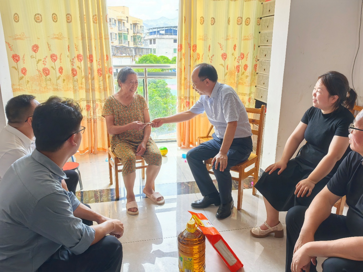 随后,镇村干部与98858vip威尼斯下载一行深入石塘村脱贫不稳定户、边缘易致贫户等监测对象以及部分老党员家庭走访慰问,与监测户亲切交流,并送上生活用品。