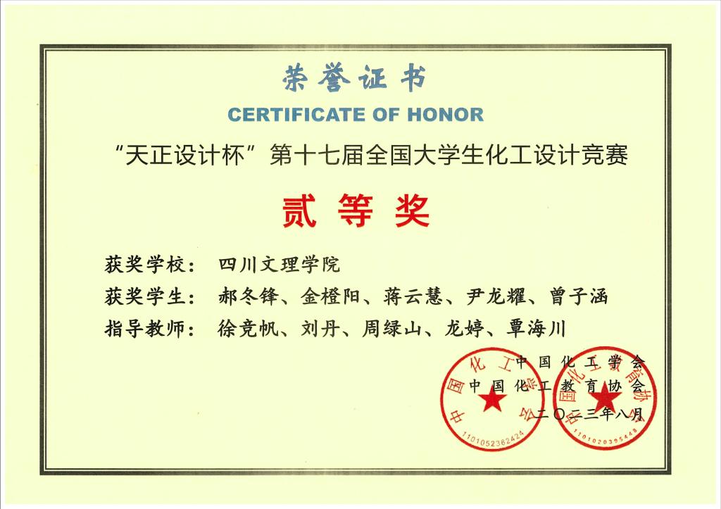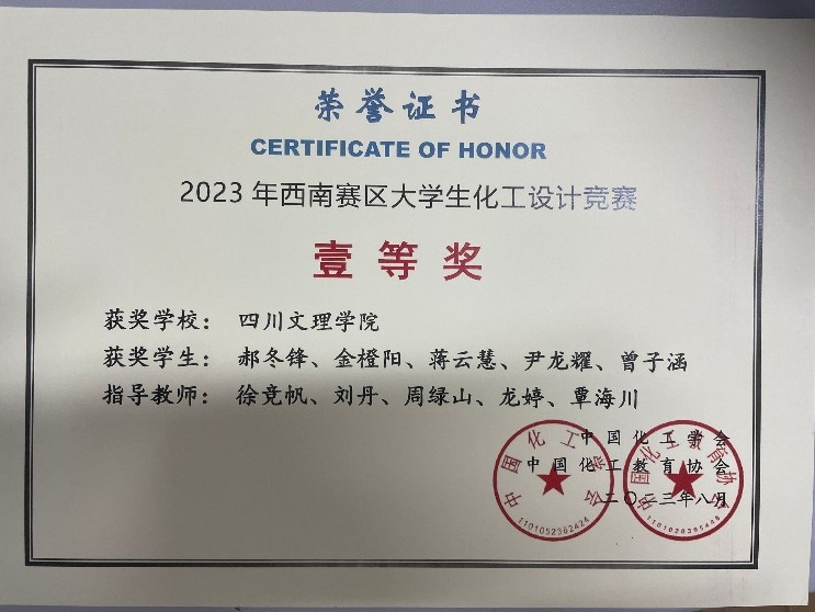 2023年四川省大学生化工设计竞赛 |