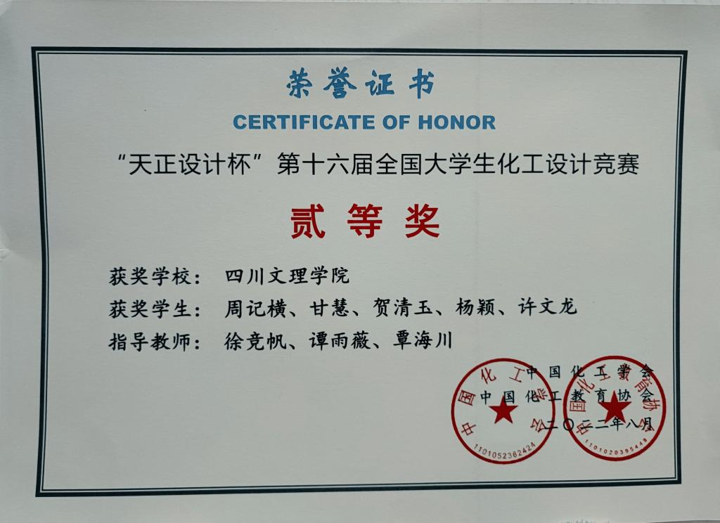 “天正设计杯”第十六届全国大学生化工设计竞赛 |