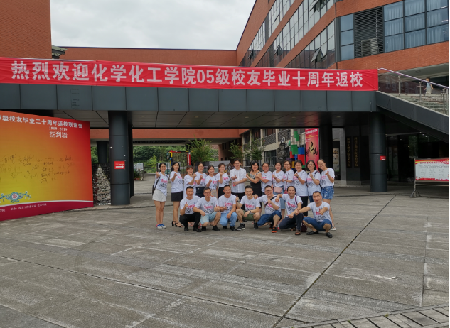 2019年8月3日,金年会官网原化学系2005级4班部分校友饱含眷恋之情重返阔别10年的母校,在新老校区举行了丰富多彩的毕业十周年聚会活动,共同追忆往事,共叙同窗情、师生情。本次活动得到了母校和母院的大力支持,金年会官网院长刘长路、院党总支部书记兼教工党支部书记朱朝菊、副院长邓祥、科任老师向文军等老师参加了聚会活动。
