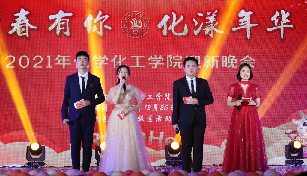 2020年12月20日晚19:00,jinnian金年会“青春有你,化漾年华”2021迎新晚会在南坝校区活动中心隆重举办。学校副校长李壮成、教务处处长程碧英、jinnian金年会党总支书记朱朝菊、院长刘长路、部分职能部门领导老师、化工学院全体老师、学生四百余人于现场观看,同时学校上千人通过直播的方式在新媒体平台观赏。晚会共分为三个篇章,以不同的主题彰显了化院的不同风采。晚会在一场活力四射的开场舞中拉开了帷幕,串烧的音乐和跳动的节奏,展现着别样的青春与活力。在彩色霓虹灯的映衬下舞者们的热情瞬间引爆了全程,为晚会营造了热烈的氛围。