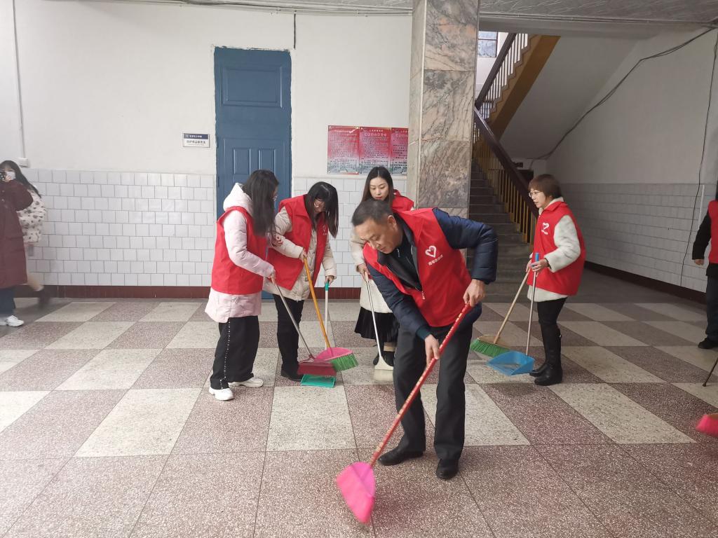 活动之前,志愿者们集结在一起,明确了此次大扫除活动的目标,然后有序的领取打扫工具和进行了活动分组,五名老师和五名同学分为一组,分别到达各自的目的地进行大扫除。在大家齐心协力工作之下,彻底清扫了一些死角死面、卫生盲区,提升了整体环境。进一步提高了教师职工与学生的健康意识、防范意识,促进了个人养成良好的卫生健康习惯,营造人人参与的浓厚氛围,巩固了前期疫情防控成果,共创整洁文明校园。活动过程中,不仅打扫了卫生,同时也增进了同学与老师们的交流。老师们在聊天过程中告诫同学们一定要养成爱卫生,爱清洁的优良习惯。