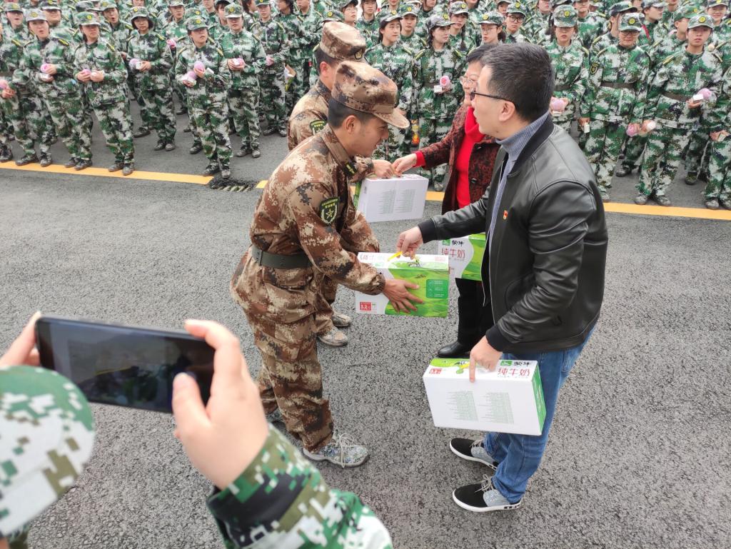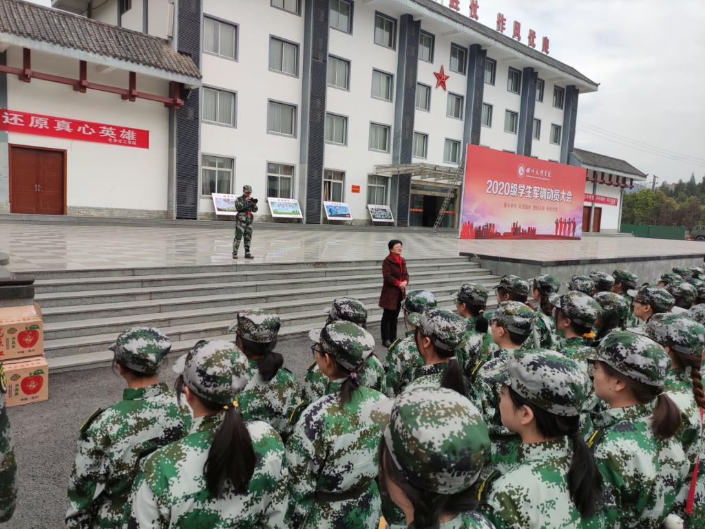 2021年3月23日下午2时,jinnian金年会党总支书记朱朝菊、副书记潘维、辅导员颜爽赴达州国防基地看望慰问2020级军训同学,学生会主席石雅楠、班助代表王渝陪同前往。