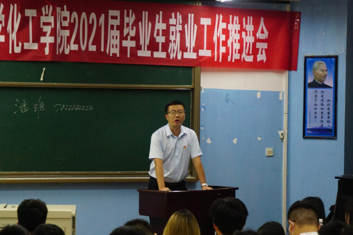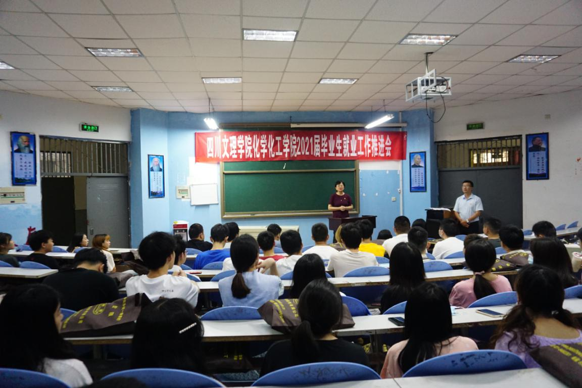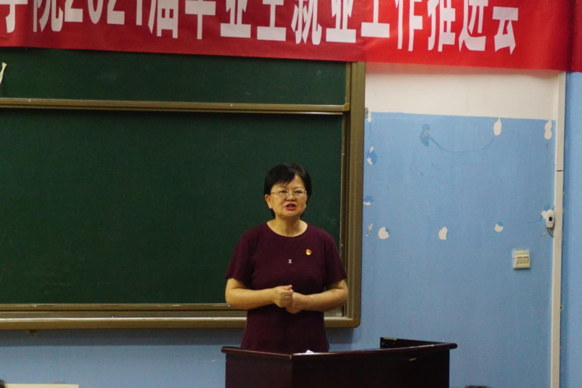 jinnian金年会于5月29日在成都产教融合基地召开2021届毕业生就业工作推进会。党总支书记朱朝菊主持会议并讲话,副书记潘维、学工办副主任崔宝玉、驻基地辅导员乔昌兵以及学院毕业生70余人参加会议。
