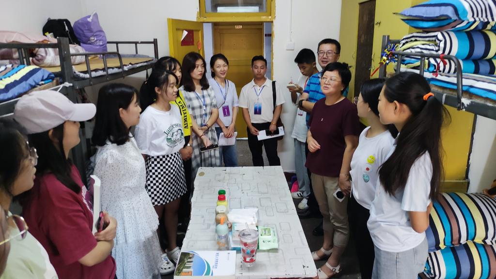 2021年9月9日下午六点,jinnian金年会党总支书记朱朝菊、党总支副书记潘维,学工办副主任崔宝玉,思想政治辅导员罗云及李苹老师一同走访2021级新生寝室。