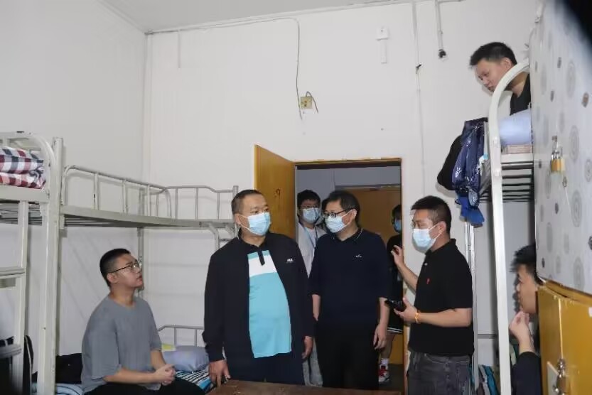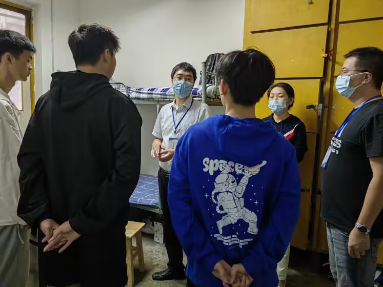 近期,国内疫情形势严峻,为积极配合疫情防控要求,筑牢校园安全防线,了解学生健康情况和思想动态,共同保障全体师生安全,9月26-30日,金年会官网党总支书记朱朝菊、院长赖川、组织员张忠、副书记潘维、副院长向文军、周绿山,以及全体科级以上干部、辅导员、班主任分批次带队走访学生宿舍,传达学校疫情防控政策要求,了解线上教学效果,检查宿舍安全卫生情况,搜集学生存在的困难与需求,切实关心学生身心健康,将学校疫情防控政策与新学期工作要求落到实处。