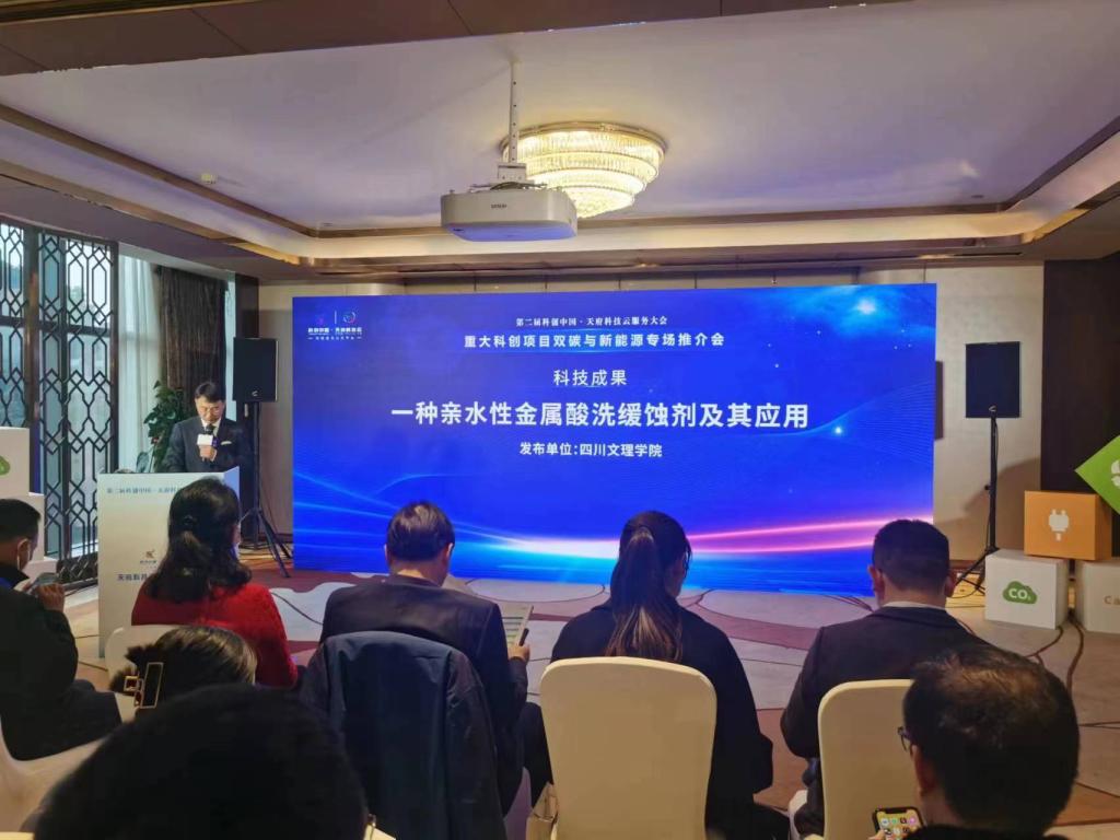 2月15日至16日,第二届“科创中国·天府科技云服务大会”在成都举行。由jinnian金年会院长赖川教授研究团队自主研发完成的“一种亲水性金属酸洗缓蚀剂及其应用”成果入选此次大会重大科创项目双碳与新能源专场并进行现场推介。