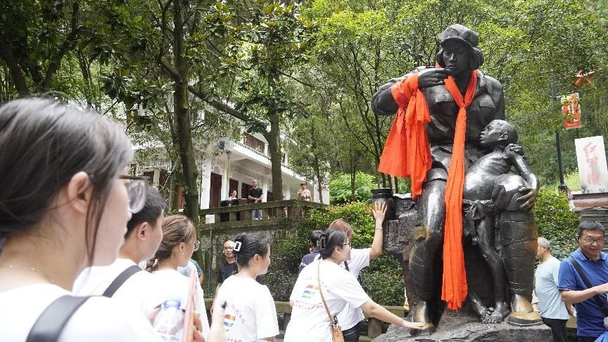 24日,实践团来到遵义红军烈士陵园。在烈士陵园里,同学们威严肃立,为烈士默哀。烈士陵园的一块碑上记录了一位名叫“小红”的英雄事迹,讲述了红军卫生员龙思泉为帮助百姓治病耽误转移时间而被敌人杀害的故事,龙思泉的光辉事迹和为国为民的无畏精神,将永远温暖着同学们和追求幸福的路程。