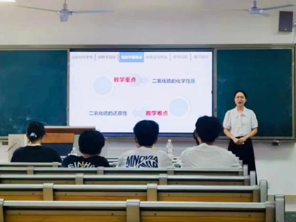 本次比赛分为即兴演讲、说课、模拟授课、回答问题四个环节,主要考查参赛选手的语言表达能力、基本教学技能、临场发挥能力以及是否达到一位教师的基本职业素养。经过激烈的比拼,最终2022级1班张悦琬同学通过在《二氧化碳》模拟授课中展现出较强的课堂掌控能力,王妮娜同学凭借在《二氧化硫》课堂中轻松活泼的教学氛围,深入浅出的课堂表现,获得了学院推荐参赛的资格。