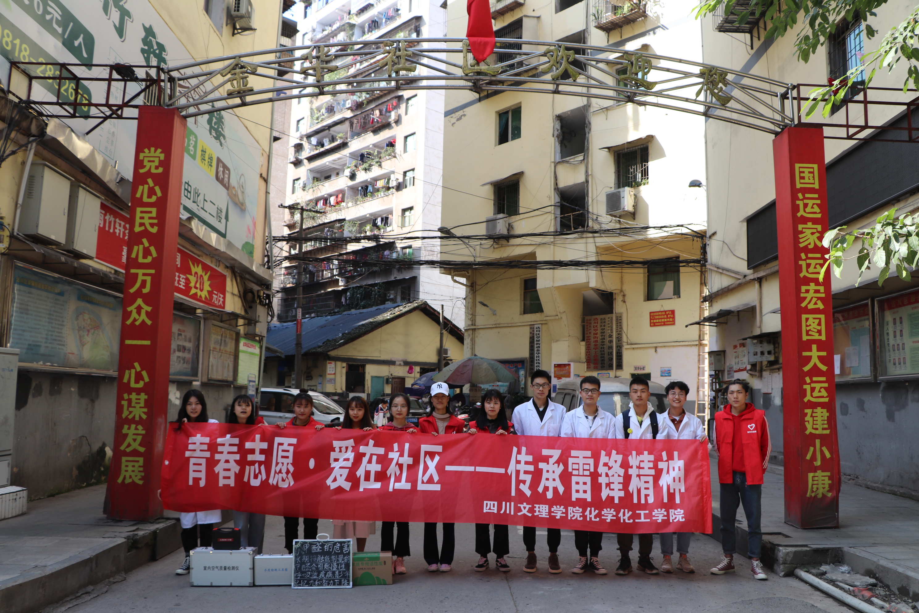 11月3日下午1点50分,青年志愿者们于jinnianhui金年会诚信至上南坝校区门口集合,仔细认真地检查相关仪器是否完备,并按照事先分配好的小组,组织好队列,随后在义务服务活动相关工作人员的带领下前往金华社区。到达活动地点后,各小组分工明确,有序地开展各自的工作。宣传小组的成员们向社区居民宣传此次检测活动及意义,同时其他志愿者对社区居民进行雷锋精神的宣讲与普及。义务服务活动相关的工作人员为社区居民进行空气质量、水质检测,并对已检测居民的检测结果进行详细的登记,以便为检测超标的用户提供改善方案并进行后期跟踪及对问题是否解决历史进行反馈。