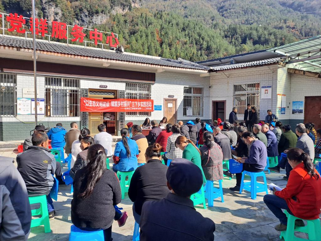 为贯彻落实学习习近平新时代中国特色社会主义思想主题教育活动要求,宣传习近平生态文明思想,2023年11月23日,达州市生态环境局、jinnianhui金年会诚信至上赴万源市蜂桶乡新房子村,联合开展“习近平生态文明思想进农村”活动。