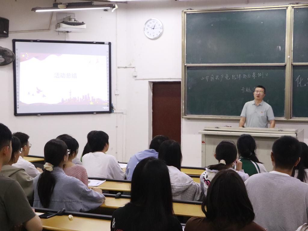 本次活动主要围绕“党纪学习教育”主题展开。会议伊始,两位老师领学了新修订的《中国共产党纪律处分条例》,强调了《中国共产党纪律处分条例》着眼解决大党独有难题、健全全面从严治党体系,与时俱进完善纪律规范,为以中国式现代化全面推进强国建设、民族复兴伟业提供坚强纪律保障的现实意义。