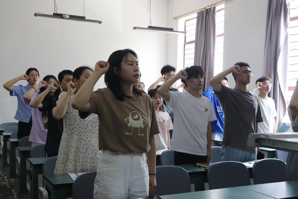 大会最后,潘维副书记带领转正党员宣读入党誓词,并就大会作了总结发言。他首先对大会通过按期转正的预备党员以及被接收成为预备党员的发展对象给予肯定并表示衷心的祝贺。其次,他强调要牢记入党誓词,永葆党性初心,在今后的学习、生活和工作中,仍需要用党章的标准严格要求自己,要坚定目标,努力改正现有不足,积极向优秀共产党员学习。同时要坚定四个自信、增强四个意识、做到两个维护,从身边小事做起,脚踏实地,更加积极向党组织靠拢,不断追求个人进步,在学生中起到模范先锋作用,争做一名合格党员。