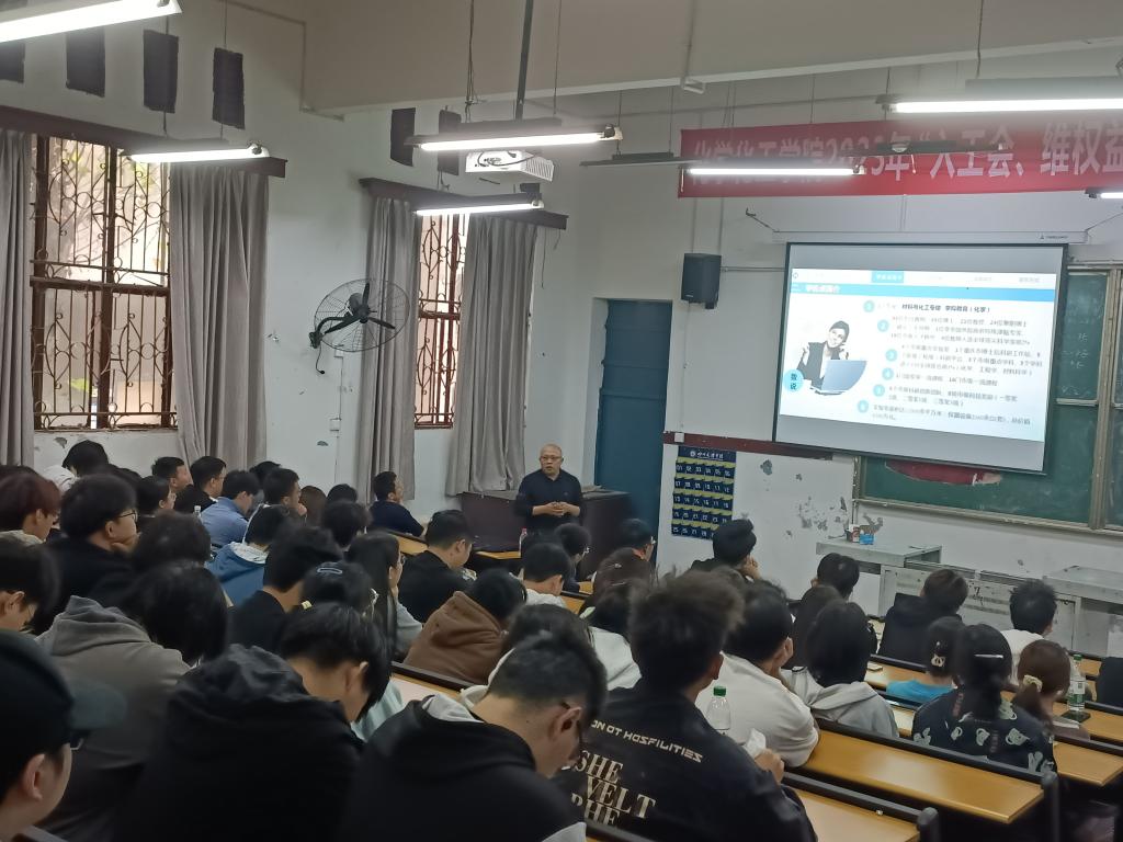 会议伊始,向文军副院长向长江师范学院石文兵院长的到来表示热烈欢迎,并鼓励金年会官网考研学生积极报考长江师范学院。随后,石文兵院长就长江师范学院jinnian金年会的基本情况、学位点简介、招生政策和奖助体系等方面进行了详细宣讲。值得一提的是,长江师范学院jinnian金年会有化学、工程学和材料科学三个重点学科。其中,材料与化工、学科教育(化学)专业的师资力量雄厚,包含一个市级科研创新团队,拥有28台先进的科研实验设备,实验室及科研项目众多。