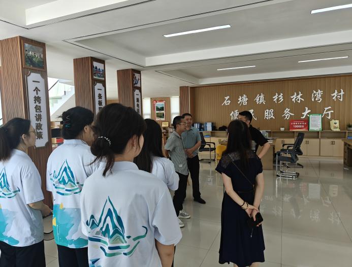 7月20日,乡村绿色治理团抵达石塘镇。次日,治理团在石塘镇镇长的带领下,走访了石塘镇杉林湾村的便民服务大厅。治理团成员们在此参观了石塘的特色农产品直播场地,并了解到了金年会官网往届学子为杉林湾村建设所做的贡献。在走访过程中,镇长指出,“三下乡”实践活动的意义非凡,并期望同学们能沉下身子走进村镇,与乡亲们面对面、心贴心地交流,以年轻视角观察石塘,用所学知识感知石塘。