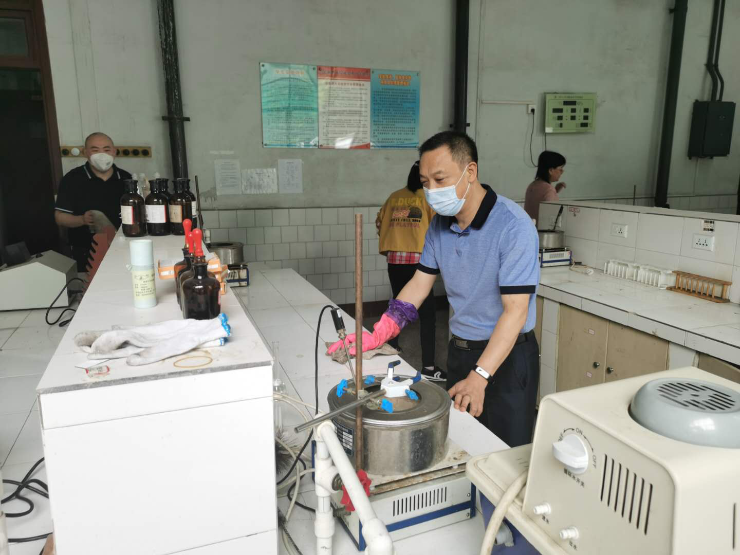 活动开始后,朱朝菊书记首先强调了本次活动的目的:在于引导全院教职工树立讲文明、讲卫生、防疾病、除陋习的良好习惯,营造人人参与“四城同创”的浓厚氛围。同时结合学生返校工作,朱书记指出在充分掌握学生返校前14天身体健康情况、确保安全的前提下,分两个批次落实大三、大四年级学生返校。为保证实验室能正常安全运行,学院领导还对实验室进行了安全大检查,并对各实验室药品进行清理,确保实验室无安全隐患。