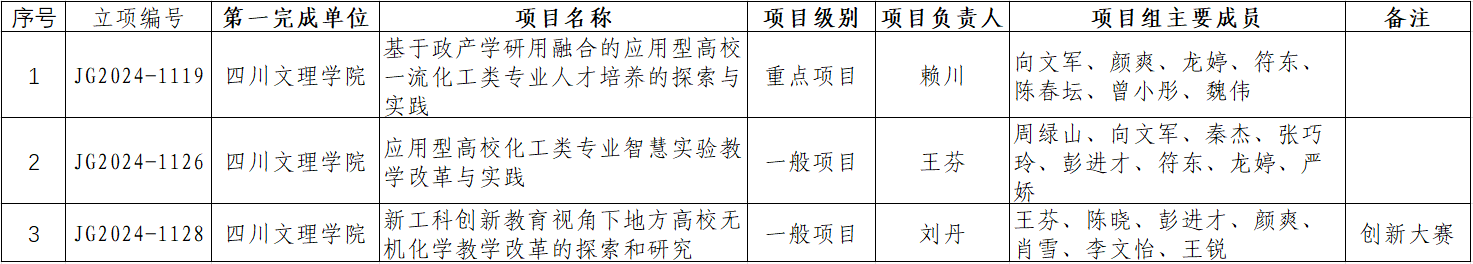 近日,四川省教育厅发布了《四川省教育厅关于公布2024-2026年四川省高等教育人才培养质量和教学改革项目立项名单的通知》(川教函〔2025〕15号),金年会官网获批立项项目14项(其中重点项目4项、一般项目10项),jinnian金年会获批立项项目3项(其中重点项目1项、一般项目2项)再创新高。