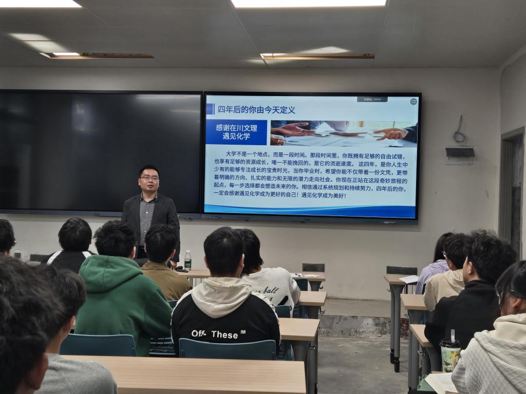 此次专业导专题讲座不仅为大一新生的学业规划提供了清晰启迪,更在他们心中播下了热爱化学、探索真知的种子。谭军书记的精彩讲授,宛如一盏引路明灯,为这些即将启航的学子照亮了学术道路与职业前程。