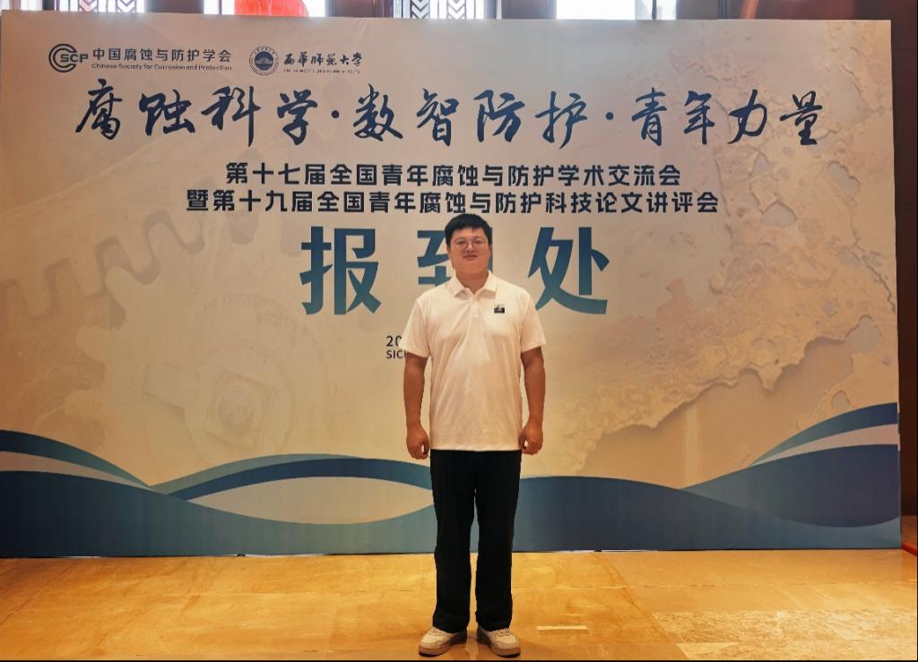 829日至31日,jinnian金年会教师吴嘉豪博士参加了在四川省南充市举办的“第十七届全国青年腐蚀与防护学术交流会暨第十九届全国青年腐蚀与防护科技论文讲评会”。