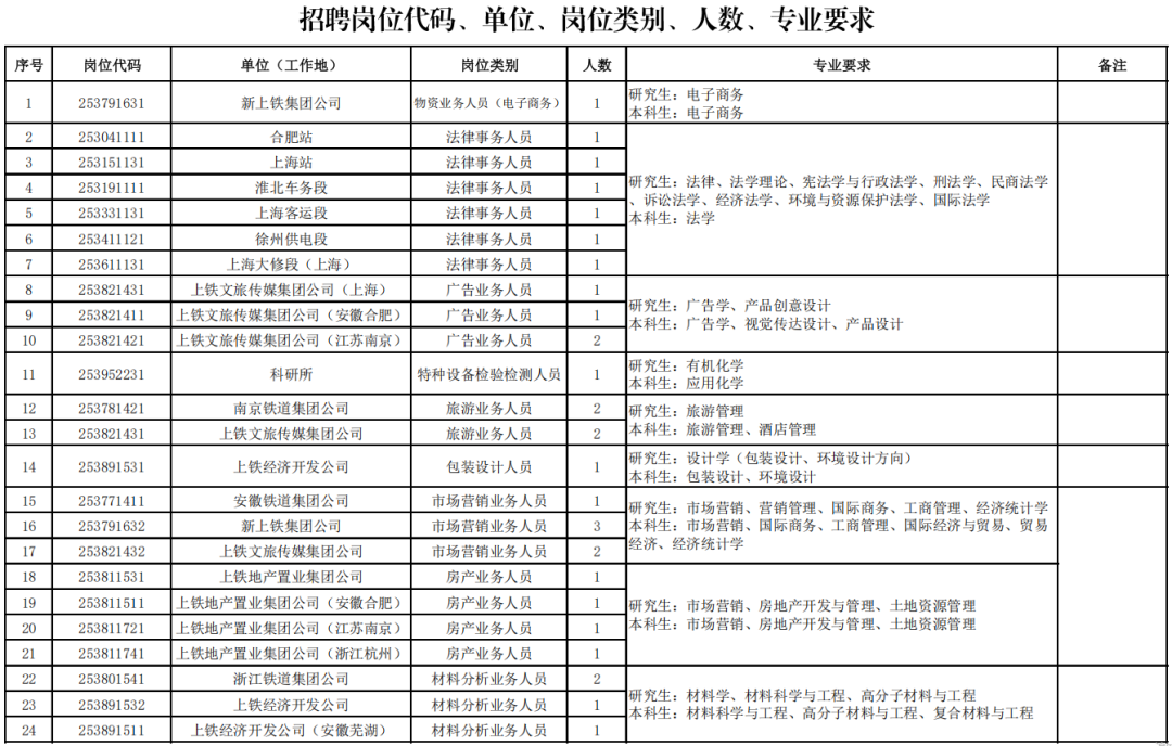 转发“中国铁路上海局集团有限公司公开招聘”
